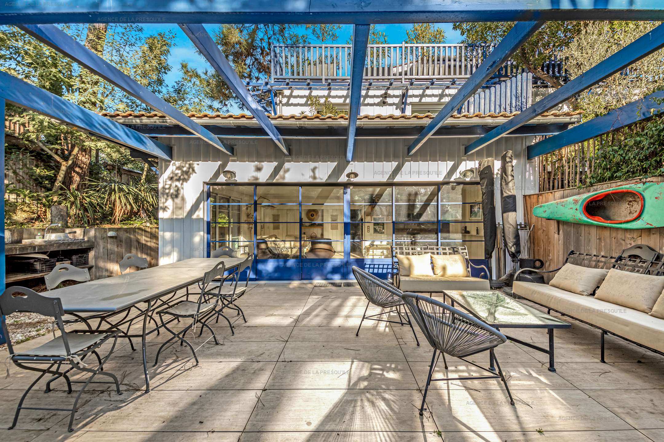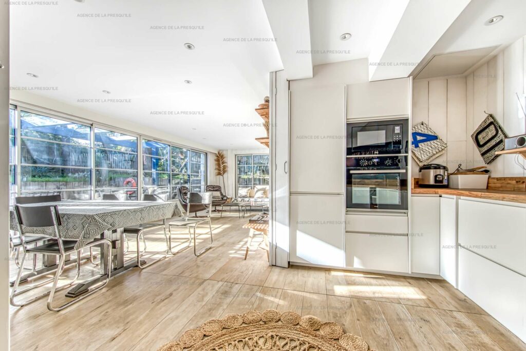 En plein coeur du Cap-Ferret, à deux pas du marché et des commerces, découvrez ce logement atypique pour 6 personnes. L’appartement, construit autour d’un bunker datant de la Seconde Guerre mondiale, se compose d’un salon/salle à manger avec cuisine équipée ouverte, une chambre lit 160 avec salle d’eau attenante et WC, une chambre lit 160, une salle d’eau, une chambre avec deux lits 80 (ou 1×160), une salle d’eau et un WC séparés.