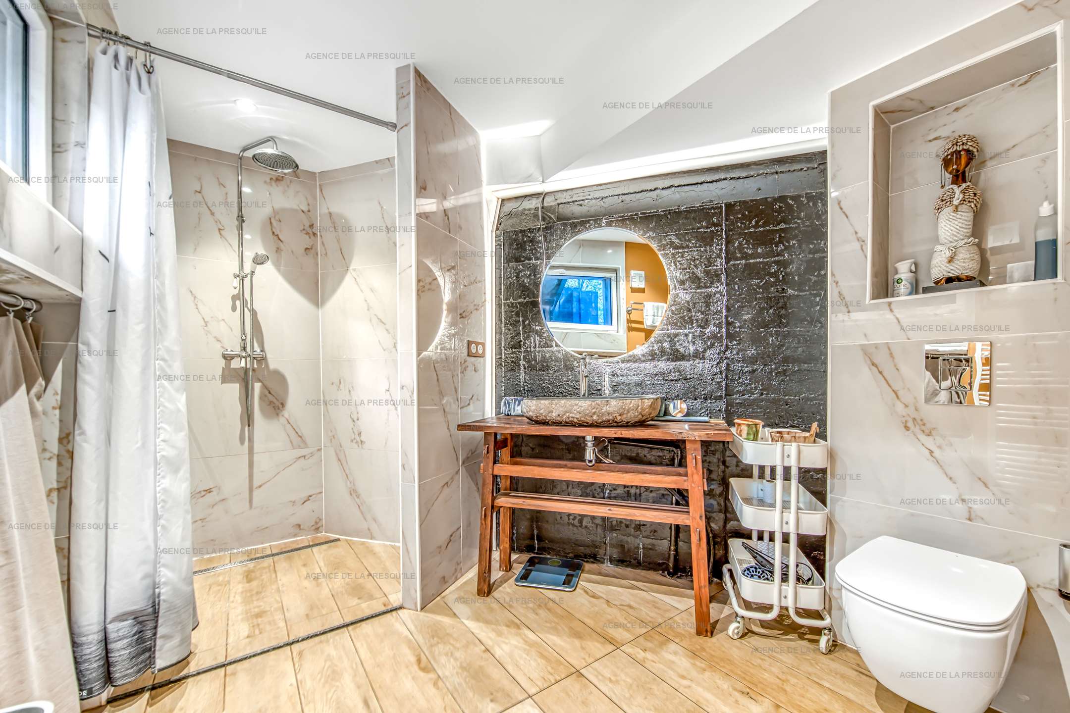 A l’extérieur, vous profiterez d’une jolie terrasse exposée Ouest avec coin repas et salon de jardin et d’un jardinet avec jacuzzi.