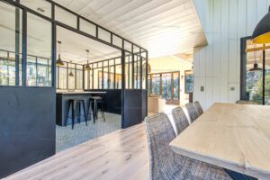 This charming wooden villa, built and tastefully decorated in 2022, is in the centre of Cap Ferret and is ideal for a family holiday or a holiday with friends. On the garden level, it consists of a living/dining area with a semi-open kitchen, two double bedrooms each with adjoining shower rooms, a master suite with a bathroom and walk-in wardrobe, a laundry room and two separate WCs. On the first floor, there is a dormitory bedroom for children with four single beds and a bathroom with a WC. Outside you will find a large terrace with a dining area, a sitting area, a shower, all around a pool heated from mid-May until September. The perfect place for some rest and relaxation.