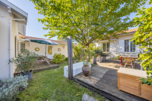 This charming historic Arcachon-style house, located just a few meters from the Bay and close to the shops in the village of Claouey, features a bright living room with dining area and kitchen, equipped with a wood-burning stove, two bedrooms, a bathroom, and a toilet. You'll also appreciate its 30 m² outbuilding, all set on a wooded 677 m² plot.