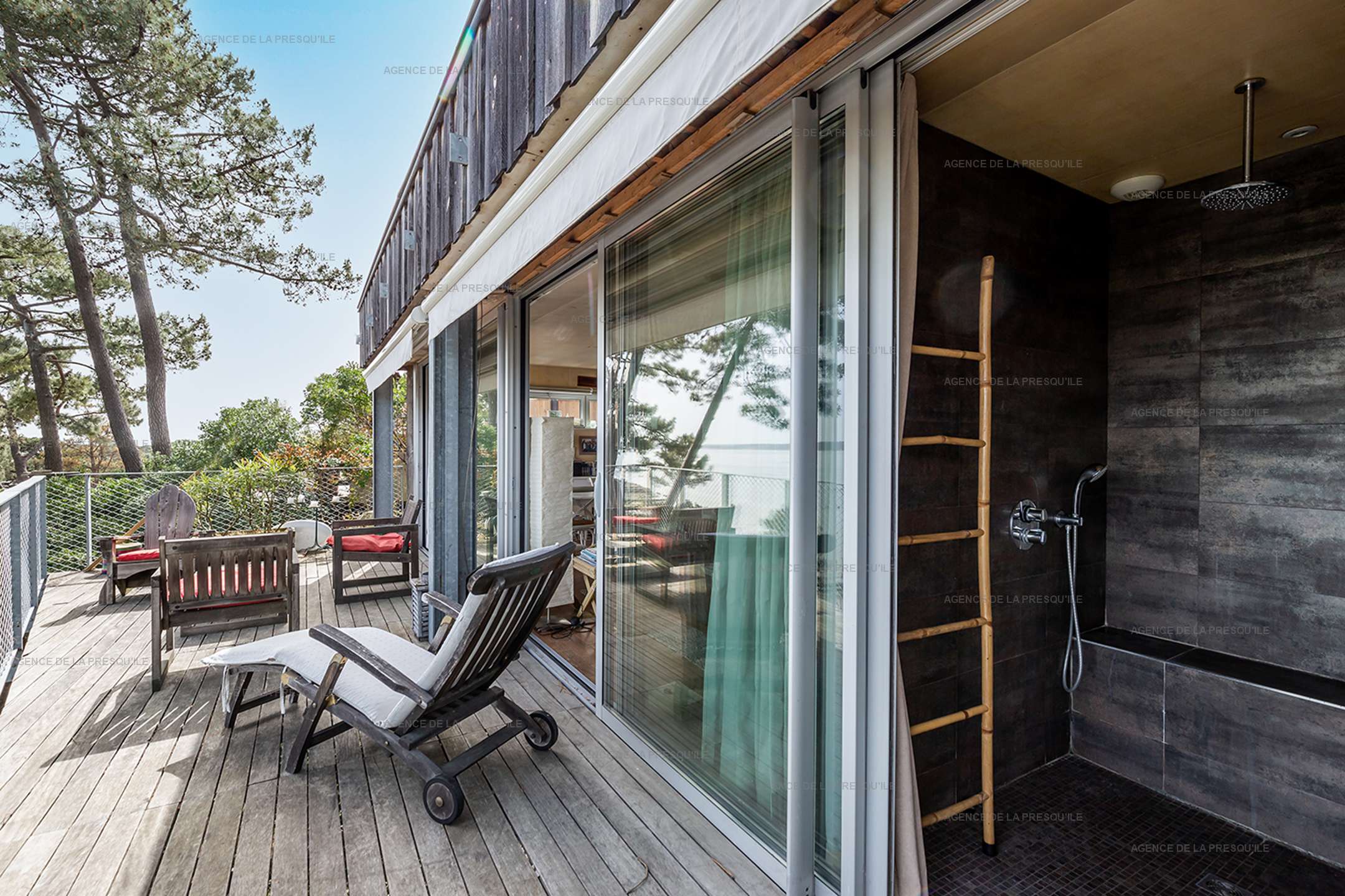 The cabin, in a very sought-after area of Cap Ferret, is in a calm hilltop location affording it panoramic views over the Bassin d’Arcachon. It also enjoys private access to the beach. It consists of a living area with a fireplace that opens onto a terrace that overlooks the Bassin, a well-equipped open kitchen, a bedroom with a shower room and a separate WC. A unique property for an unforgettable holiday.