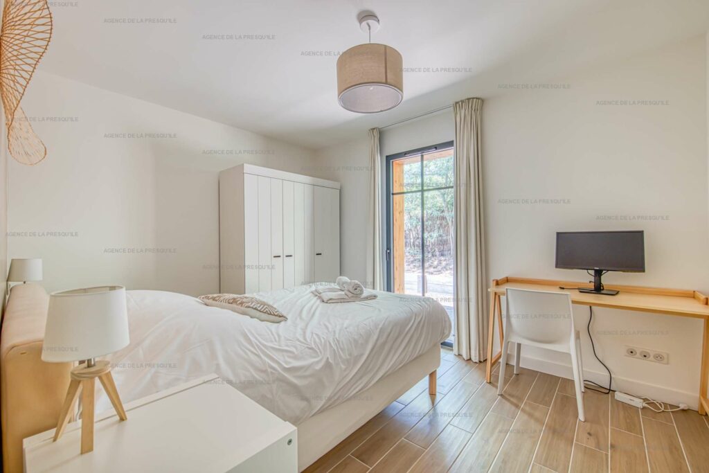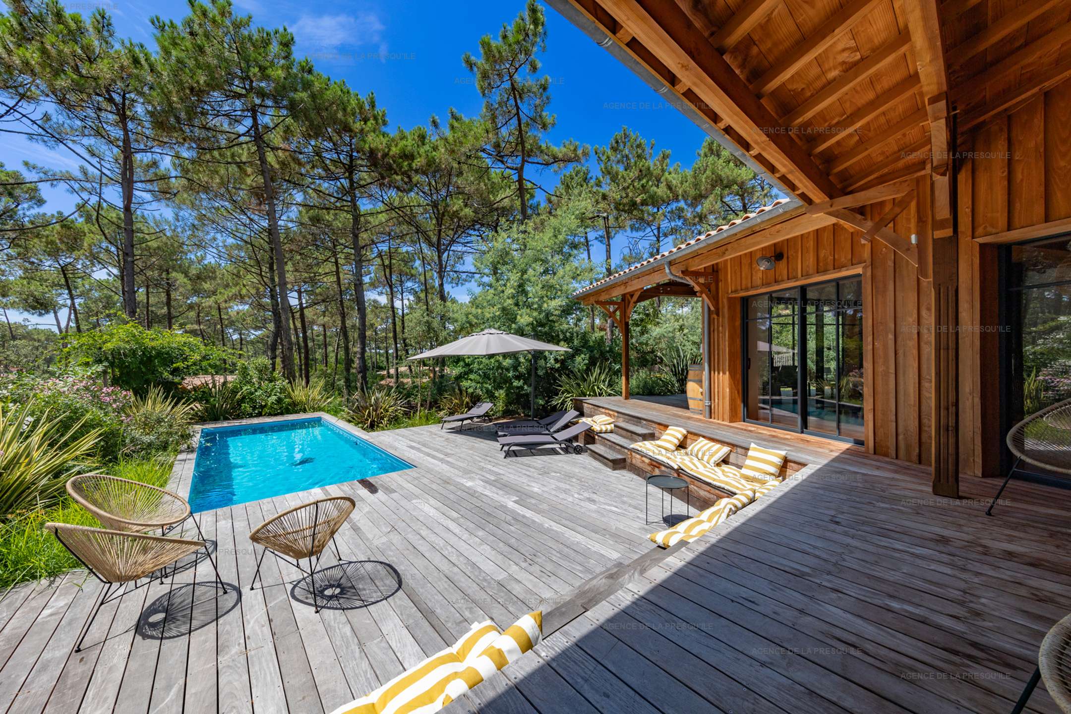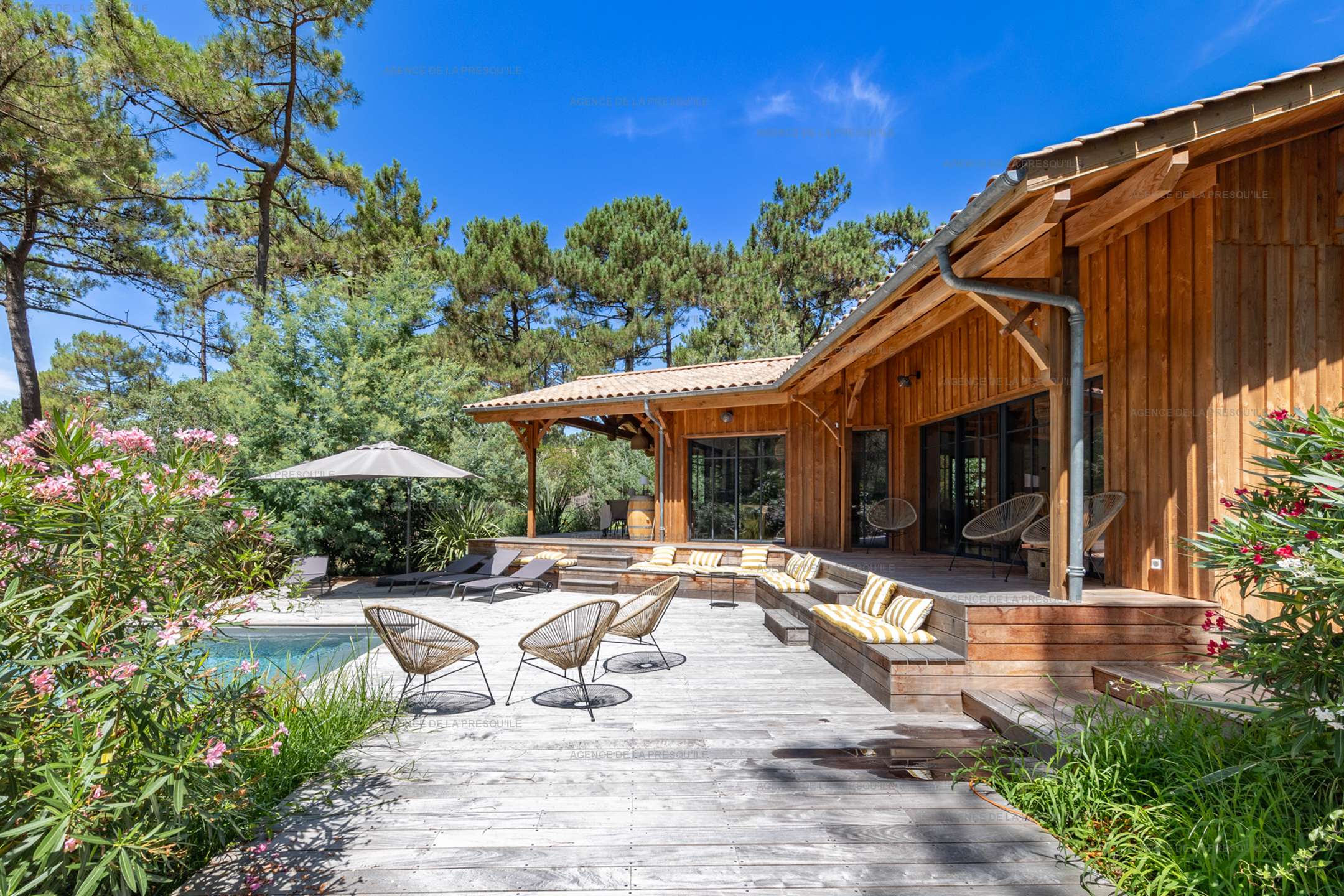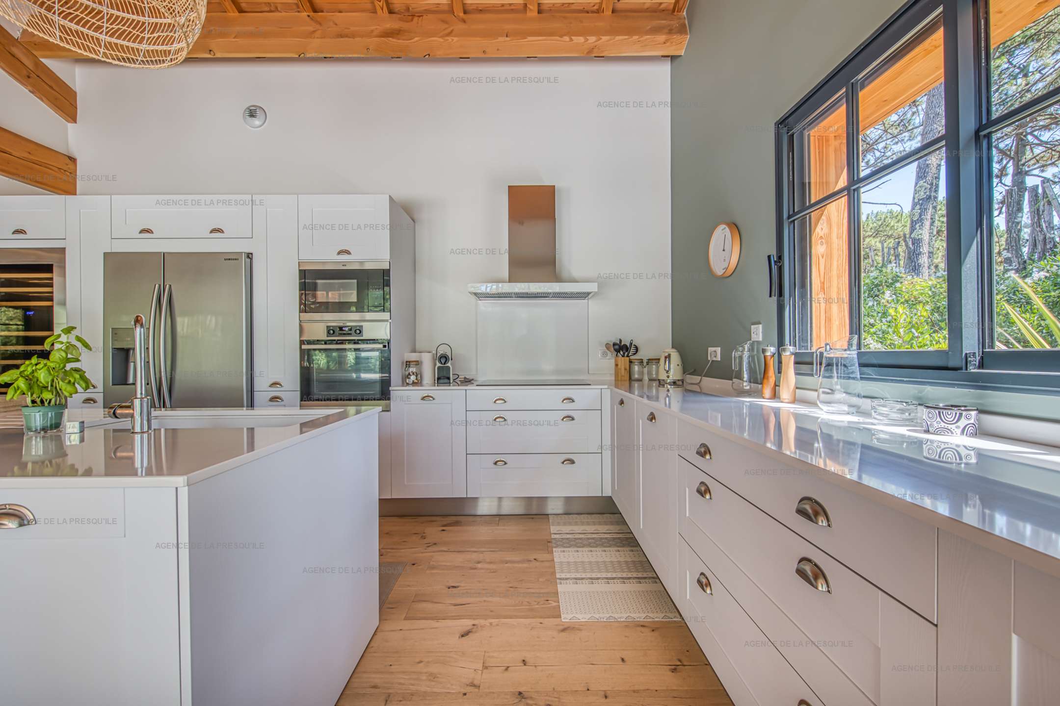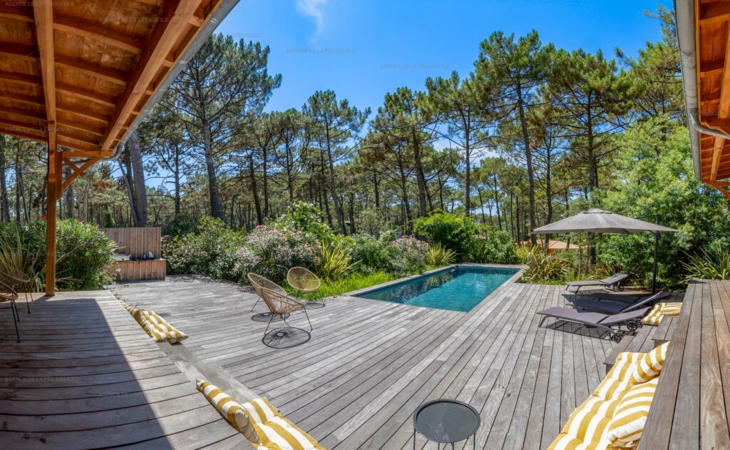 Ideally located between the Bassin and the ocean, let yourself be charmed by this beautiful villa with a pool, capable of accommodating twelve people. Set in a preserved environment on a lovely 1500 m² plot, this spacious villa offers a large living room, a fully equipped open-plan kitchen, 5 bedrooms, including a master suite, 1 bathroom, and 3 shower rooms, ensuring excellent comfort for your vacation. Its terrace, designed around the heated pool (from June to September), as well as the panoramic view over the pine trees, complete the property. Close to the Piraillan market and the center of Le Canon.