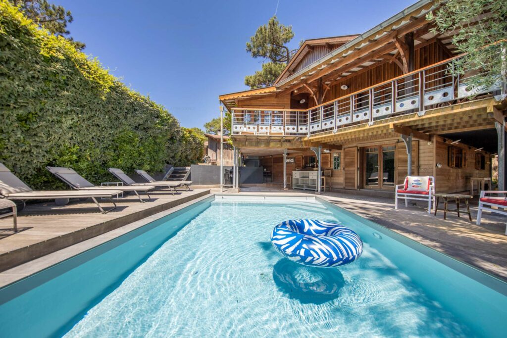Discover this charming three grounds villa in the center of Cap-Ferret, with heated pool and high-end services. The first level offers a TV lounge with play area for children, a bedroom with 160cm bed or 2x80cm, a shower room, a separate toilet and a laundry. On first floor, you find the living room with lounge/ dining room, fully equipped open kitchen, separate toilet, two suites with 160 cm beds, shower room and toilets attached. On second floor, two bedrooms with 160cm beds, an office area, a shower room and separate toilets. All rooms are air-conditioned. Outside, large terraces with outdoor kitchen, relaxation area with garden furniture, a heated and secure pool complete the property. You also have a leisure area with table tennis, bowling and gym bike, and an electric car charger.
