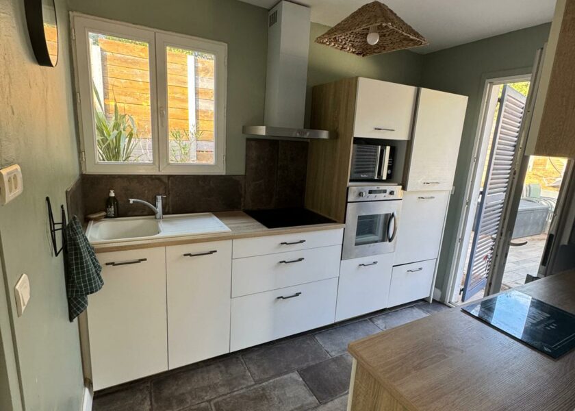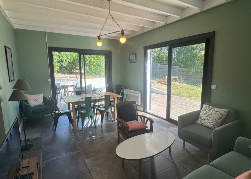 Let yourself be charmed by this beautiful wooden villa located in a quiet neighborhood near the Port of La Vigne and the Bay. The villa features a living/dining room, a separate fully equipped kitchen, five bedrooms, one shower room, one bathroom with a toilet, and a separate toilet. Outside, you’ll enjoy a lovely terrace with a dining area, garden lounge, and a heated swimming pool. All set on a landscaped, enclosed plot facing south.