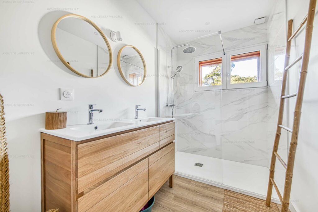 Located in a quiet and central area of Cap-Ferret, discover this charming renovated villa on two levels, consisting of a living/ dining room open to a fully equipped kitchen, two bedrooms with kingsized bed, a bathroom, separate wc, a third bedroom with kingsized bed and shower room, a laundry room. The lower floor offers you a last room with kingsized bed, shower room and toilet attached. Outside, enjoy a terrace with dining area. Possibility to park in a vehicle.