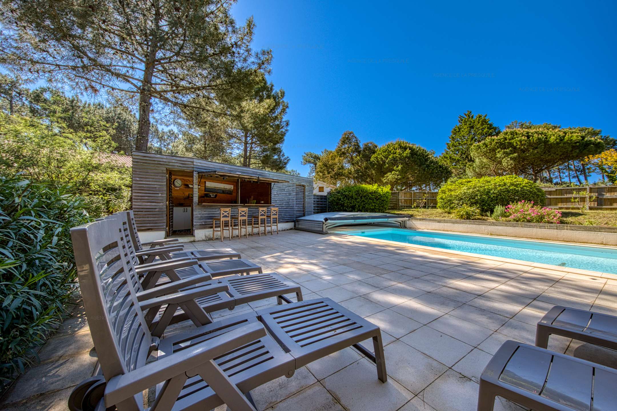 Discover the charm of this bright villa with swimming pool, ideally built on two levels. Nestled in a peaceful residential area of ??Canon, this property offers a protected and serene setting for its residents. As soon as you enter, you will be seduced by a spacious living room accompanied by an open and fully equipped kitchen, a practical pantry and a separate toilet for greater comfort. Upstairs, three bedrooms, one with a private bathroom await you, all giving access to a balcony and a terrace offering a breathtaking view of the surrounding area. Outside, a covered terrace invites you to relax, a summer kitchen allows you to take full advantage of the sunny days, a bowling alley for moments of conviviality and a heated swimming pool for refreshing swims.