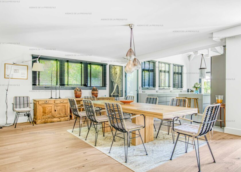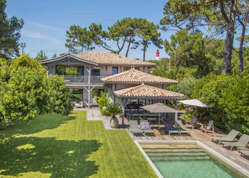 Come recharge in this beautiful family villa nestled in the heart of a pine forest – the perfect place for a peaceful holiday with family or friends. With its comfortable indoor spaces and well-designed outdoor areas, everything is in place for you to fully enjoy your stay. Spread over two levels, the villa can accommodate up to 12 guests in a serene, natural setting. On the first floor, the villa features a living room open to nature, a welcoming kitchen, one double bedroom with its own en-suite bathroom, a dormitory with four single beds (2 bunk beds of 90 cm), three additional double bedrooms, two shower rooms, and two separate toilets. The house opens onto a large, landscaped outdoor area designed for enjoying the open air to the fullest, including a fully equipped summer kitchen. A shaded terrace with a large dining table, a cozy outdoor lounge area, and a fully enclosed garden complete this relaxing retreat.
