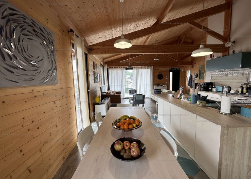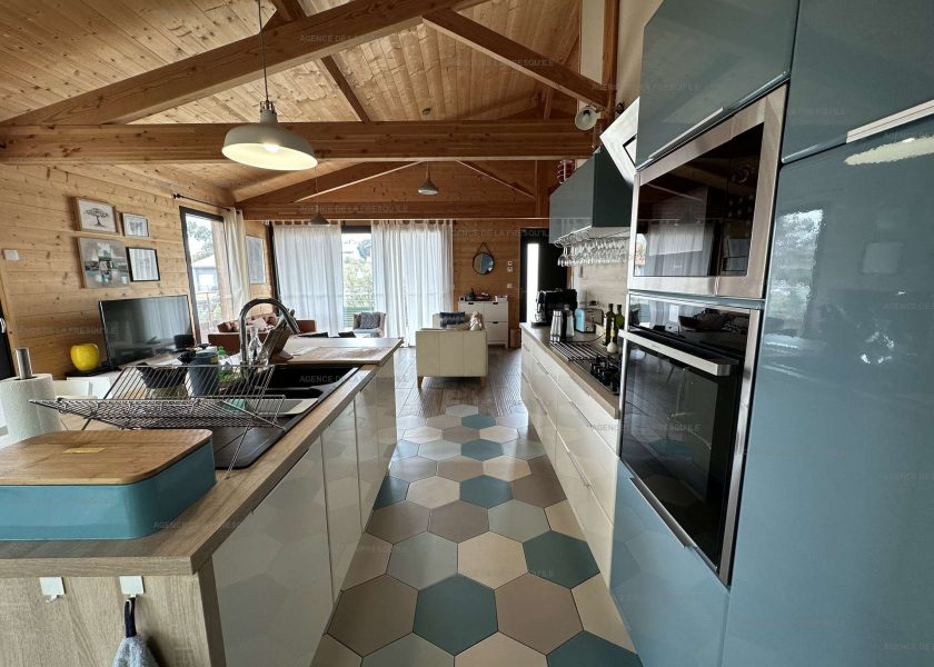 This lovely villa of high-standing has a 4x8m swimming pool heated from April to October and is ideally located in Cap Ferret, near to the Bassin d’Arcachon and just a short distance from the Horizon beach on the ocean. On the ground floor, you will find a living and dining area, an open kitchen, a laundry room, a master suite with its shower room, a children’s bedroom and a bathroom with a shower and bath tub, as well as a separate WC. Upstairs, there are three further bedrooms, one of which has its own shower room and WC, a separate bathroom with a WC. Outside, near the pool, a guest house has a 180cm bed, a shower room and a WC.