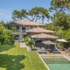 This stunning wooden villa has a singular style and a luxuriant, exotic garden. The ground floor consists of an entrance hall with a WC, a living area with a fireplace, a well-equipped open kitchen and a laundry room. Two bedrooms, each with shower rooms and WCs, give onto an interior terrace. Upstairs, you will find a master suite with a large walkin wardrobe, a shower room and a bathroom each with a WC. The upstairs floor benefits from a pretty, flower-filled terrace. There is also a refurbished cabin with a double-bed sized sleeping area on a mezzanine and a shower room.