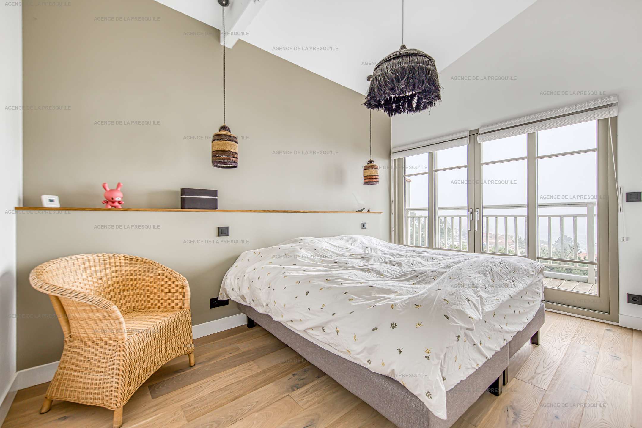 Édifiée sur deux niveaux, le rez de chaussée comprend une entrée, un WC d’invités,un séjour/salle à manger prolongé par une large terrasse aménagée, une cuisine équipée ouverte et une buanderie. L’étage vous offre trois chambres dont une chambre parentale avec salle d’eau, WC et dressing, le tout prolongé par un balcon surplombant le Bassin. Une salle d’eau et un WC indépendant desservent les deux autres chambres.