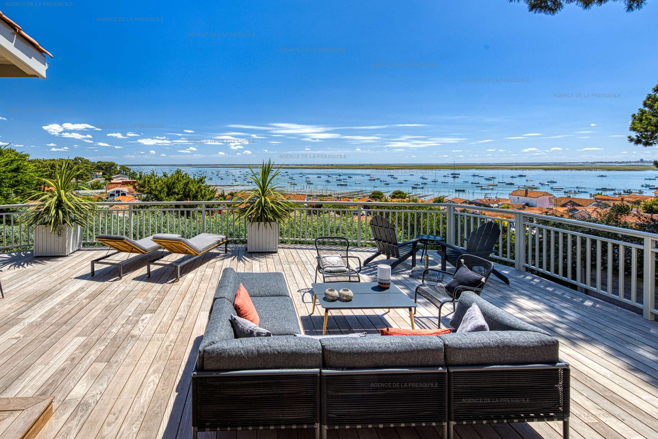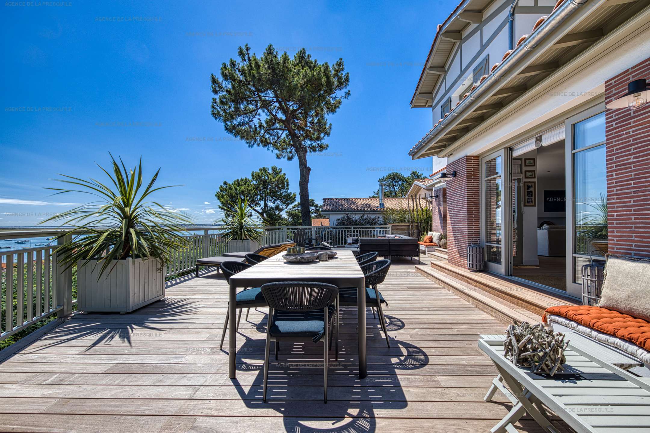 Vous apprécierez sa large terrasse avec salon de jardin et coin repas offrant une magnifique vue sur le Bassin.