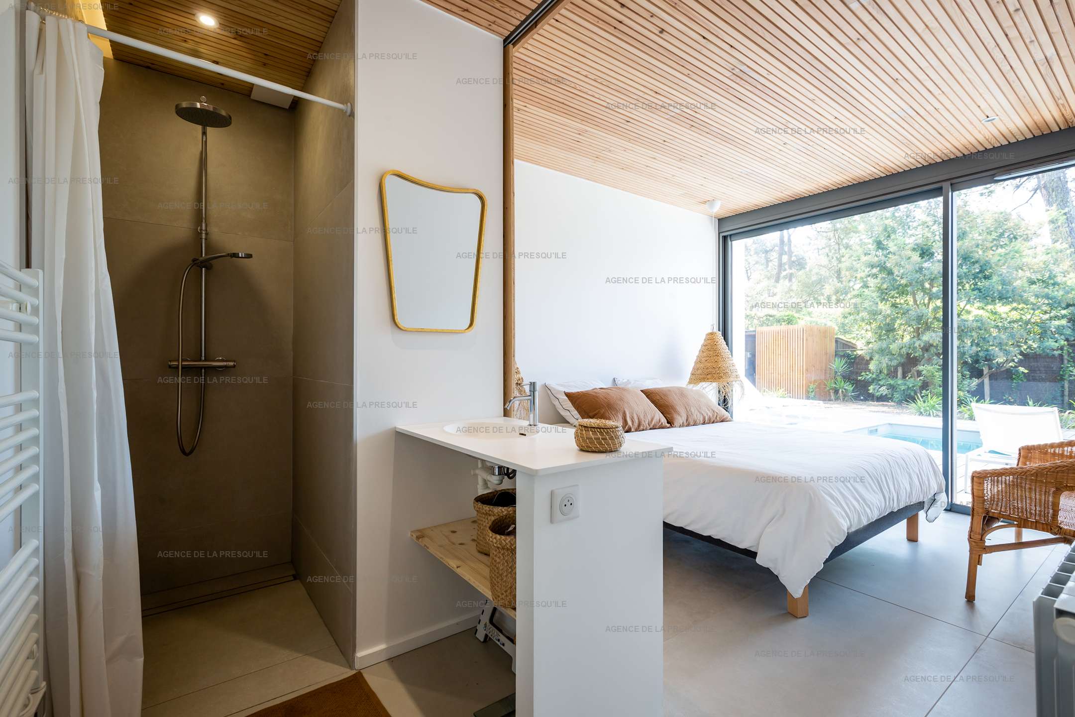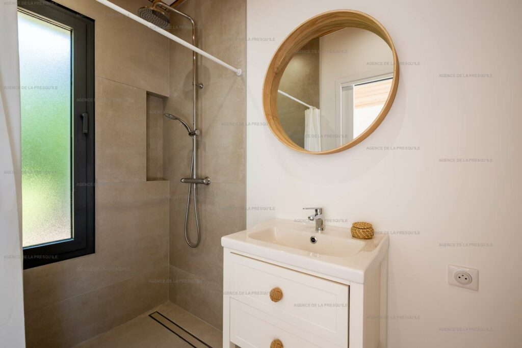 A l’extérieur, une chambre indépendante avec salle d’eau et WC complète le bien.
