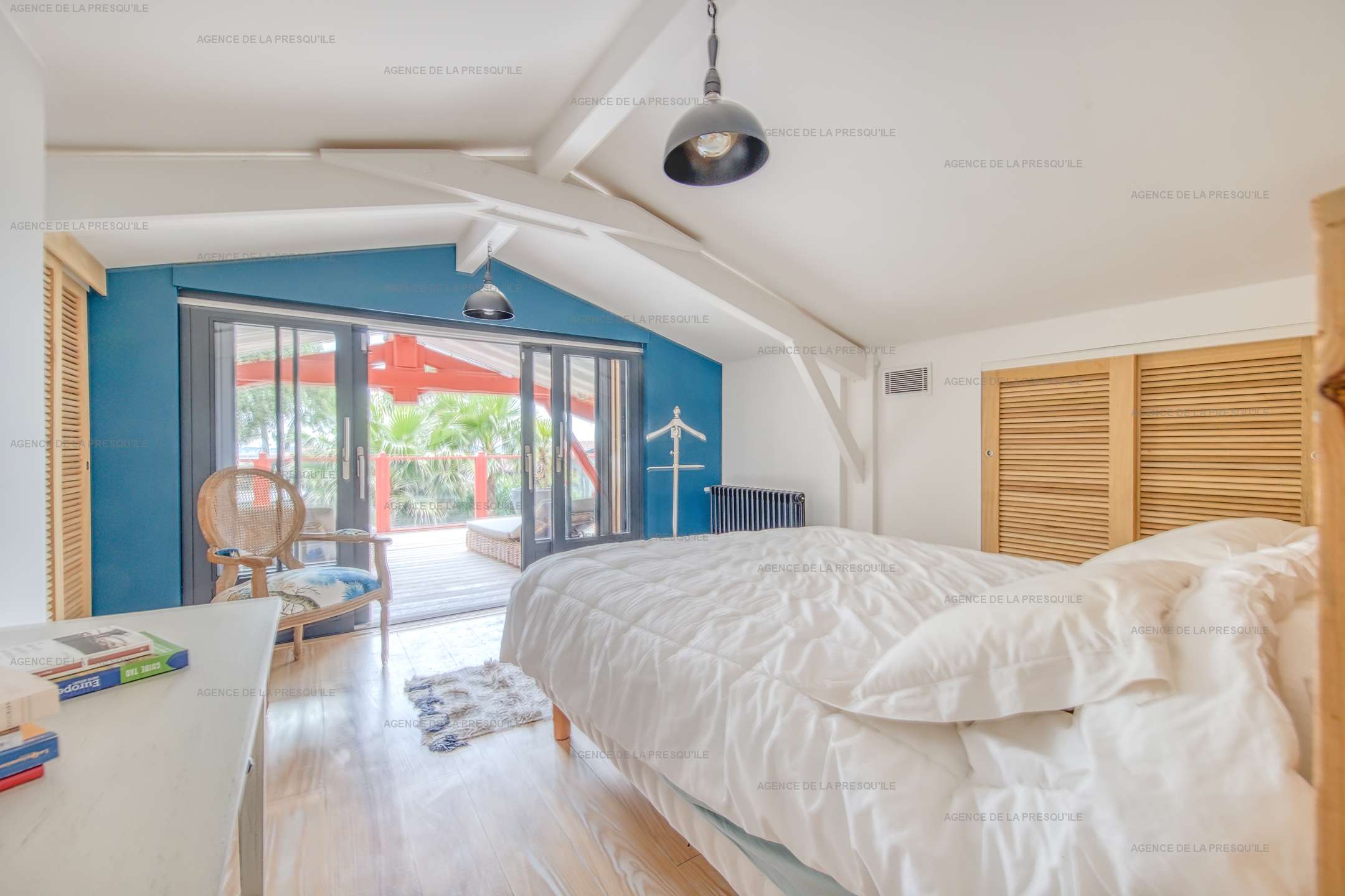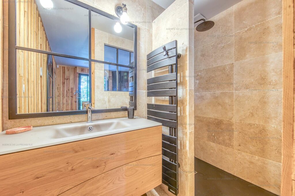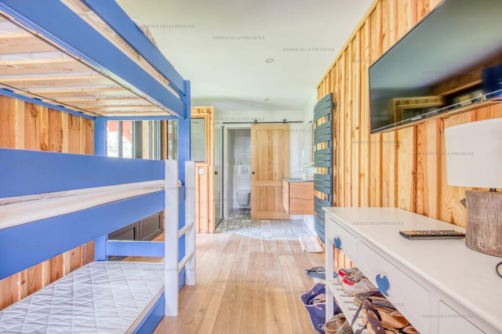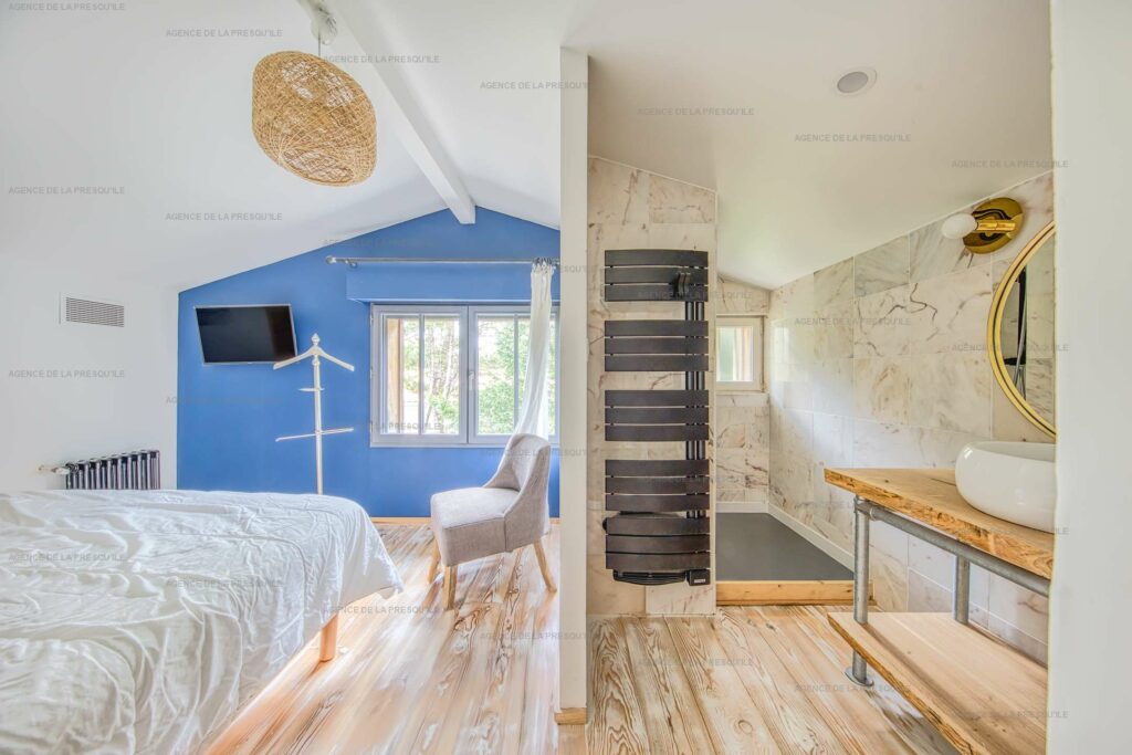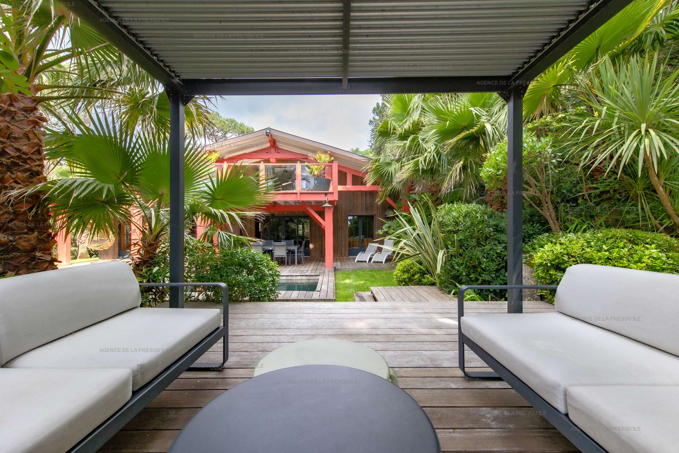 Ses extérieurs joliment paysagés vous proposent plusieurs espaces terrasses, un bassin avec fond mobile, un portillon vous donnant accès à la Plage de l’Herbe et parking.