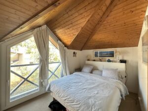 L’étage vous offre une première chambre avec lit 160, une seconde avec lit 140 et une dernière avec deux lits simples, une salle d’eau et des wc séparés.