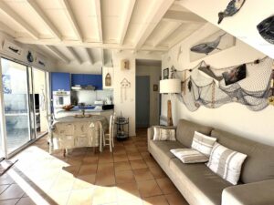 A deux pas des commerces, du Bassin et de l’Océan, découvre cette agréable villa mitoyenne sur deux niveaux comprenant un séjour donnant sur une terrasse et un jardin exposés sud ouest, une cuisine ouverte équipée, une salle d ‘eau, un wc et un cellier.