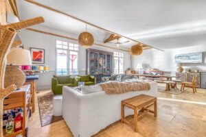 Cette magnifique villa entièrement climatisée, située en première ligne avec un accès direct à la plage et à la piscine, offre un cadre idyllique pour accueillir jusqu’à dix personnes. Dès l’entrée, on découvre un vaste séjour lumineux comprenant salon, salle à manger et cuisine ouverte, idéal pour partager des moments conviviaux.