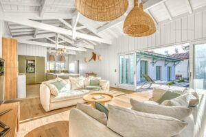 Cette villa accueille 11 couchages répartis dans cinq chambres doubles dont une avec mezzanine et deux avec salle d’eau attenante et wc, une salle d’eau commune avec wc. Les pièces de vie s’articulent autour d’une cuisine équipée ouverte sur un salon / salle à manger et des wc séparés.