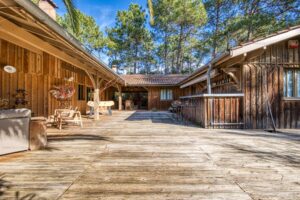 Propriété exceptionnelle au Cap ferret, de très bon standing, située proche du Bassin, de l’océan et des commerces, composée d’une belle villa avec trois cabanons et d’un bassin chauffé de 6×2 sécurisé.