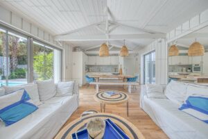 La villa principale se compose d’un salon/salle à manger avec cuisine équipée ouverte, une chambre parentale avec salle d’eau attenante et dressing, une chambre avec salle d’eau et un WC séparés. Vous profiterez également d’une dépendance invité avec deux chambres double séparées par une salle d’eau avec WC ainsi qu’une chambre avec salle d’eau attenante et WC.