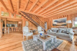 Au rez de chaussée, un double salon, une cuisine entièrement équipée, ainsi que deux chambres doubles, chacune avec sa salle d ‘eau et wc séparées.