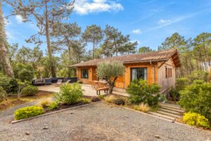 Les extérieurs paysagés et terrassés vous permettent de profiter d’un espace convivial sous les pins majestueux et d’un coin repas aménagé. La propriété dispose également d’un portillon donnant accès direct au pare feu et d’une place de parking privée