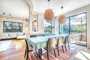 Elle se compose d’un spacieux séjour/ salle à manger, une cuisine ouverte entièrement équipée, le tout donnant sur une agréable terrasse avec piscine. L’espace nuit vous offre 6 chambres dont trois avec salles d’eau attenante et une salle de bains commune pour deux chambres. A cet ensemble s’ajoute une buanderie en sous-sol, un garage indépendant.