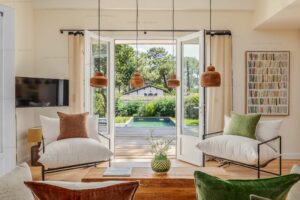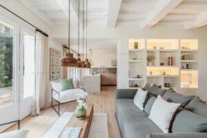 À l’extérieur, la piscine et la douche extérieure, entourées d’un jardin paysagé, offrent un cadre idéal pour se détendre. La villa est située dans un environnement où tout est accessible à pied ou à vélo.