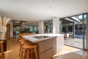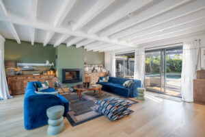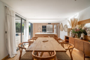 Les pièces de vie s’organisent autour d’un salon lumineux avec insert, une cuisine moderne entièrement équipée, ainsi qu’une buanderie et des wc indépendants. La partie nuit comprend cinq chambres, dont une suite avec salle d’eau privative et wc séparés, une salle de bain complète et deux autres salles d’eau. L’ensemble de la villa est climatisé.
