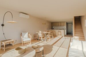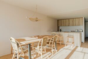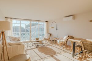 Au Cap Ferret, à quelques mètres du marché, des commerces et des plages du Bassin, cet appartement en duplex entièrement rénové offre un cadre lumineux, calme et confortable. La grande pièce de vie, ouverte sur une terrasse, intègre une cuisine américaine équipée. Deux chambres avec salles d’eau se trouvent à ce niveau.