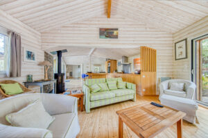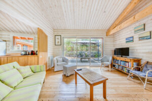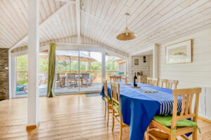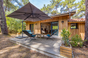 Située dans un environnement calme et naturel, cette chaleureuse villa en bois offre une belle vue dégagée sur la pinède. Elle se compose d’une pièce de vie agréable avec séjour, salle à manger et cuisine américaine, d’un cellier, d’une chambre avec salle d’eau et WC, ainsi que de deux chambres supplémentaires avec salle d’eau ou salle de bains.