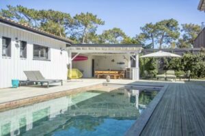 Située au cœur du Cap Ferret à quelques centaines de mètres du Bassin d’Arcachon, cette villa de charme saura vous séduire par son emplacement et ses prestations. Décoré avec goût, une cuisine extérieur entièrement équipée autour de la piscine chauffée de 10m par 4m avec une agréable terrasse.