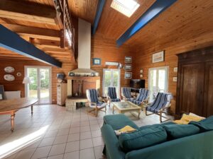 Elle se compose de 5 chambres, 2 salles d’eau, d’un grand séjour avec cheminée et d’une cuisine US.