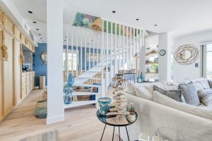 salle d’eau, WC et dressing, le tout prolongé par un balcon surplombant le Bassin, une salle d’eau et un WC indépendant. Vous apprécierez sa large terrasse et coin repas offrant une magnifique vue sur le Bassin.