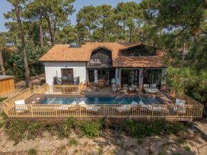 Située à la Vigne, cette magnifique villa récemment rénovée offre un cadre de vie exceptionnel, avec une vue magnifique sur la pinède et le Bassin d’Arcachon. Le terrain, de 1 900 m², est entièrement paysagé et parfaitement entretenu, créant une atmosphère paisible et intime.