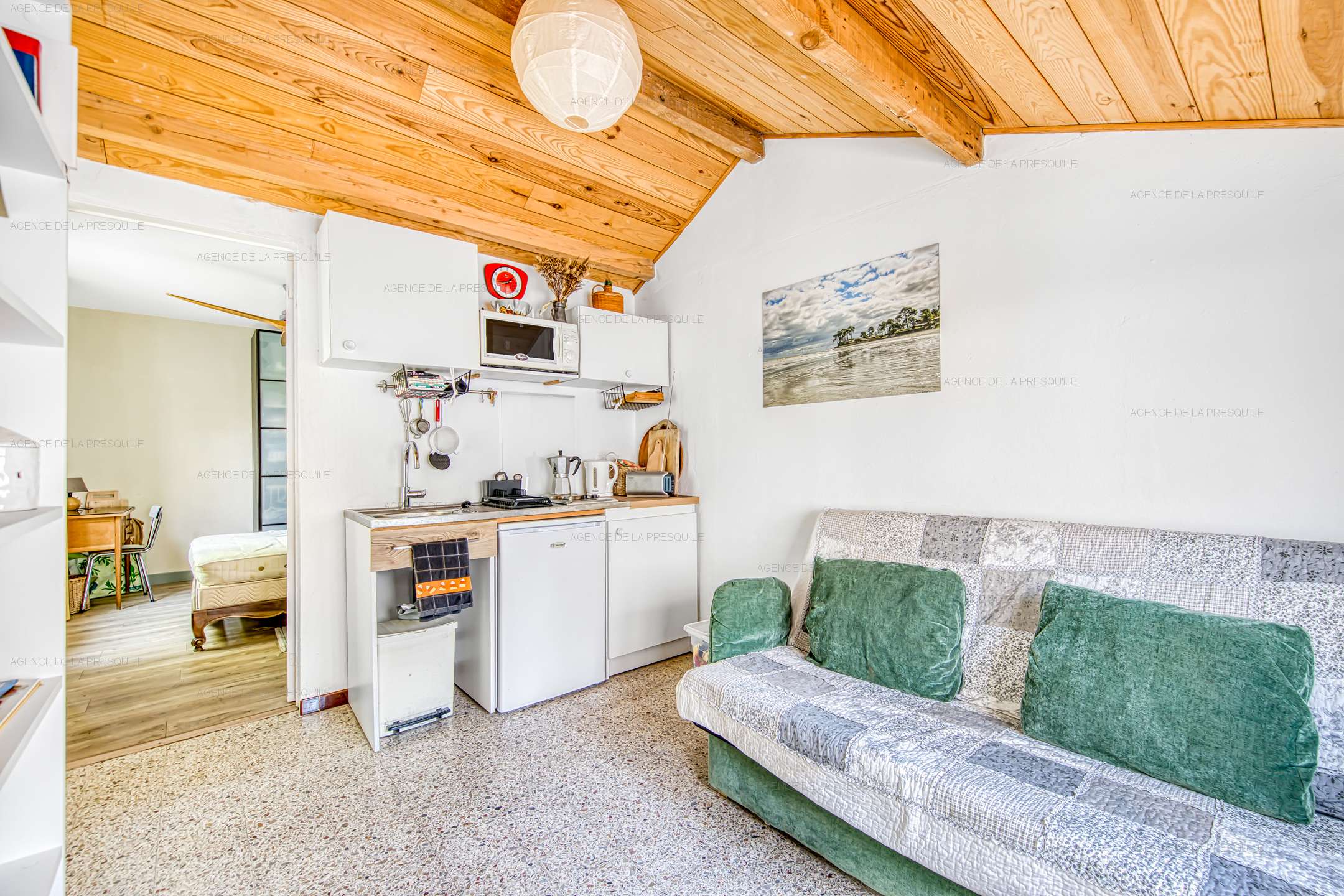 A l’extérieur, vous bénéficierez d’un studio avec kitchenette, salle de bains, wc et chambre et d’un charmant jardin.