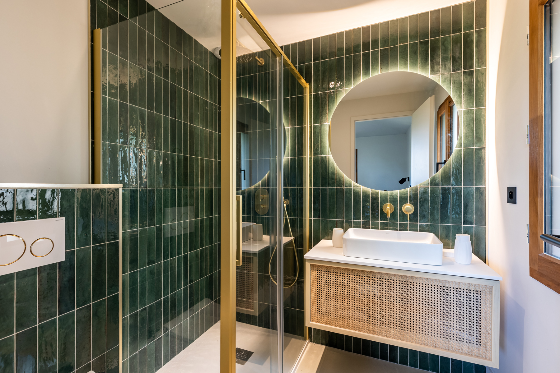 Au rez-de-jardin, quatre autres chambres avec quatre salles d’eau et dressings. Une cave à vin, une buanderie et un salon TV complètent ce niveau. Ces chambres s’ouvrent sur une très grande terrasse avec jardin paysagé