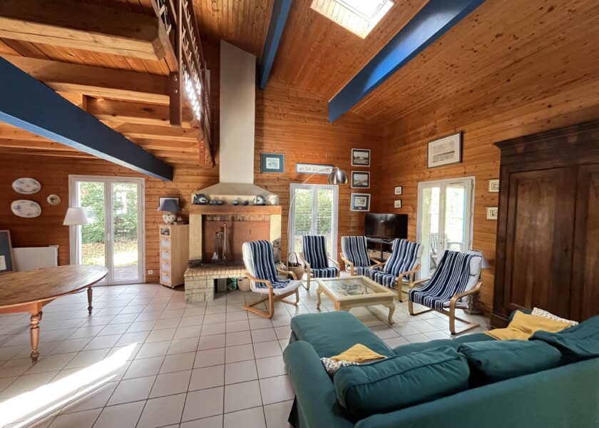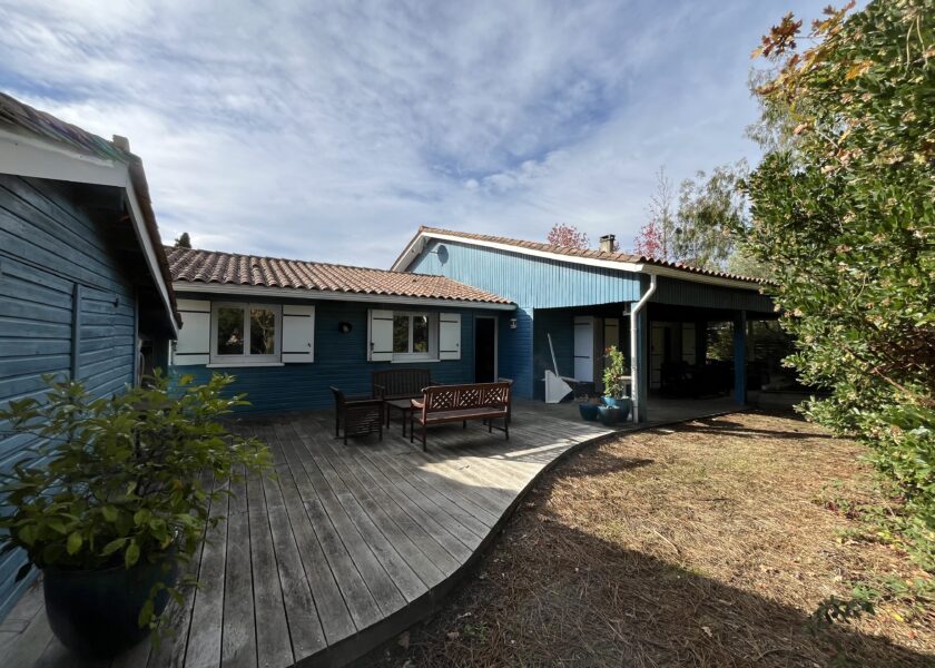 Elle dispose de grands espaces de vie s’articulant autour d’un grand séjour lumineux avec sa cuisine US et sa salle à manger ainsi que 4 chambres avec salles d’eau en RDC. A l’étage une suite parentale avec salle d’eau et dressing possède une terrasse plein sud avec vue sur le Bassin d’Arcachon.