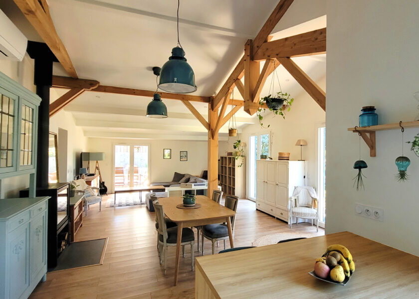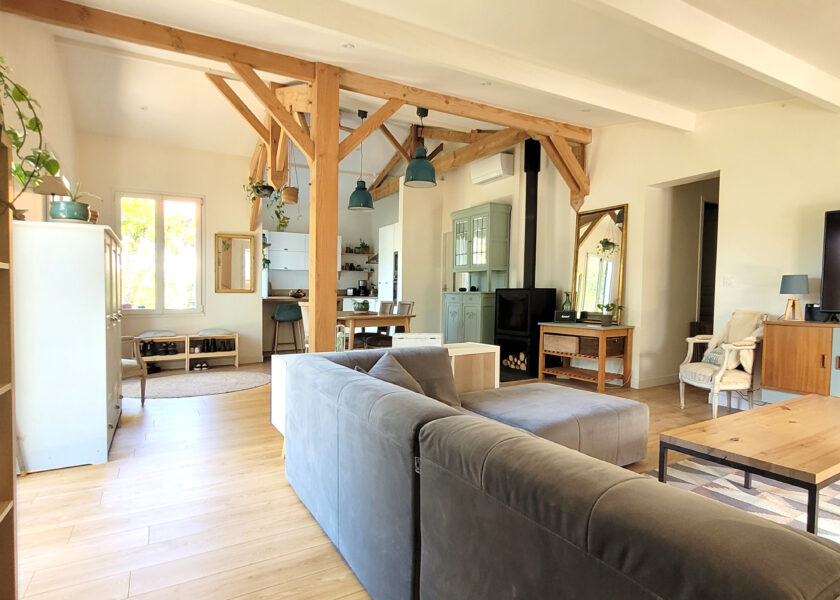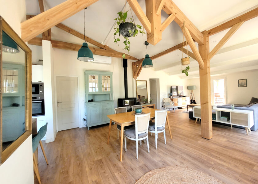 À l’étage, une troisième chambre avec salle d’eau ainsi qu’une chambre enfant complètent cet espace chaleureux et fonctionnel.