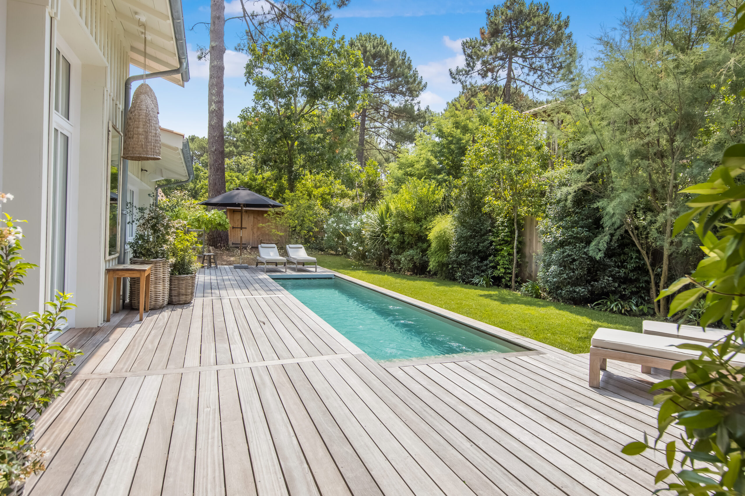 À l’extérieur, profitez d’un cadre idyllique avec une terrasse couverte et aménagée, parfaite pour vos moments de détente, un joli jardin paysager et une piscine chauffée.