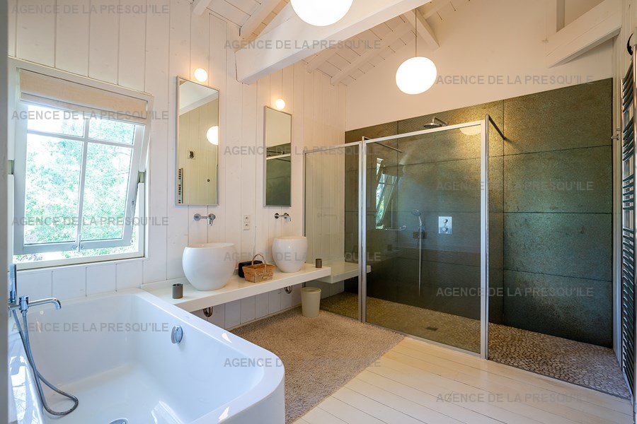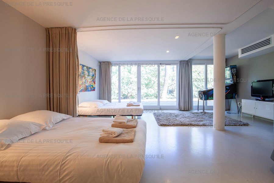 La villa principale comprend un vaste séjour salle à manger lumineux prolongé d’une cuisine américaine, une buanderie, une chambre parentale avec dressing salle de bains et douche italienne, un WC séparés. En rez-de-jardin, un espace dortoir viendra séduire vos enfants et adolescents doté de sa propre salle d’eau, une salle d’eau complémentaire et WC séparés.
