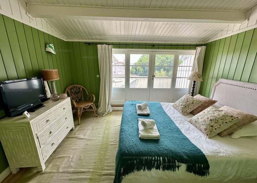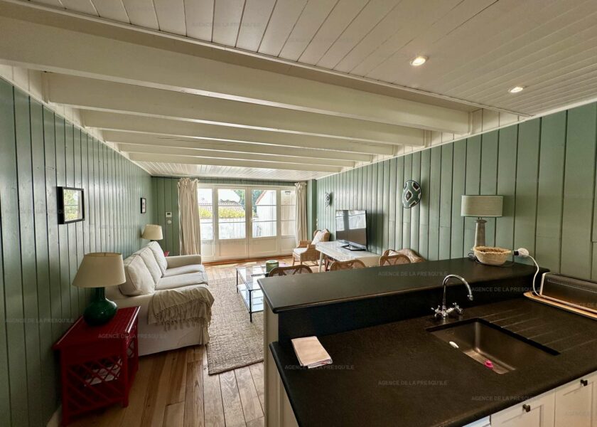 Cette jolie maison de vacances vous offre un séjour traversant prolongé par de belles terrasses aménagées, une cuisine ouverte équipée, trois chambres permettant d’accueillir 8 personnes, une salle d’eau et deux WC dont un japonais.