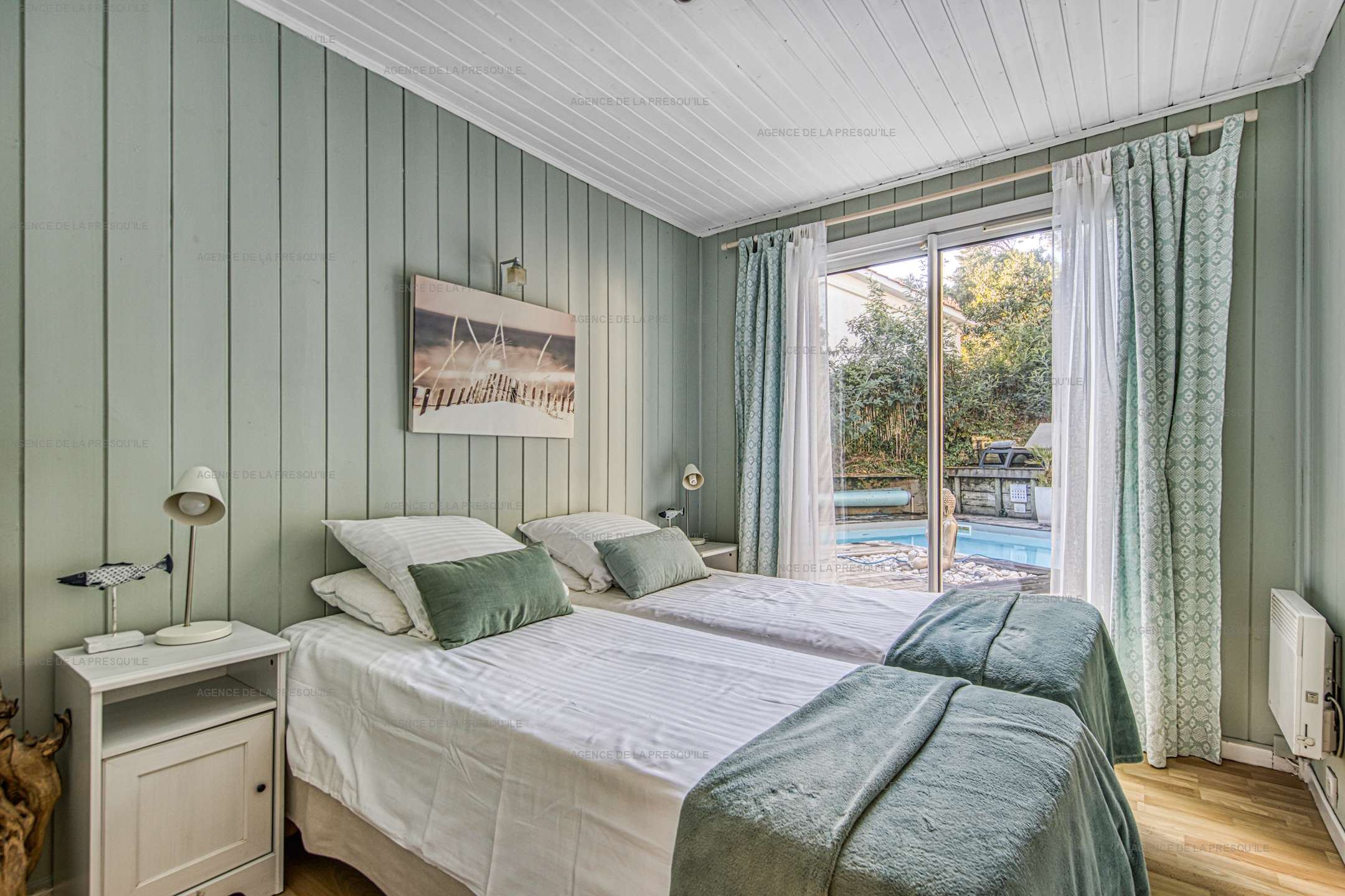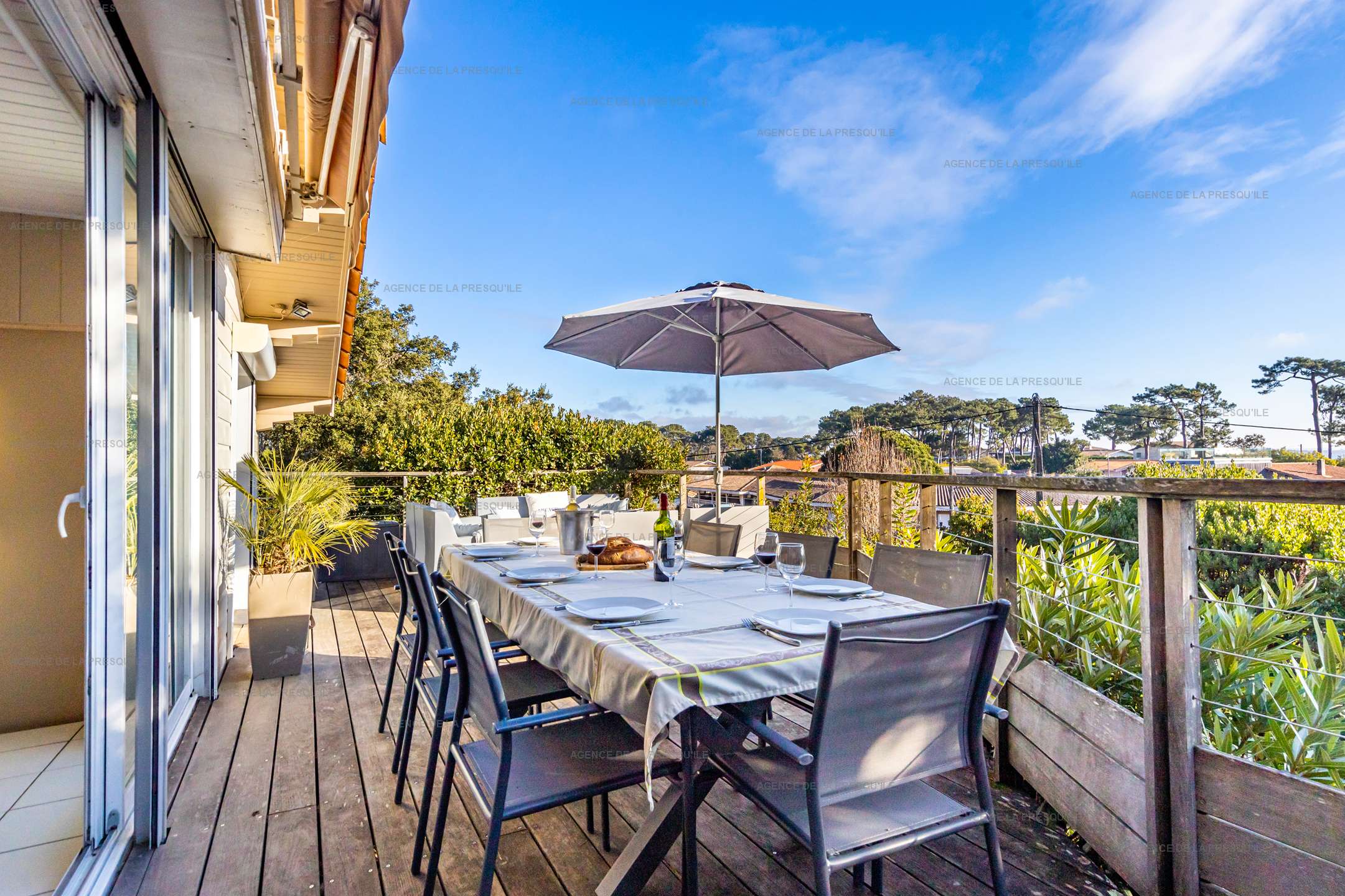 A l’extérieur, profitez d’une terrasse avec vue Bassin, coin repas et détente aménagés ainsi qu’une piscine chauffée sécurisée. Vous disposez également d’une place de parking.