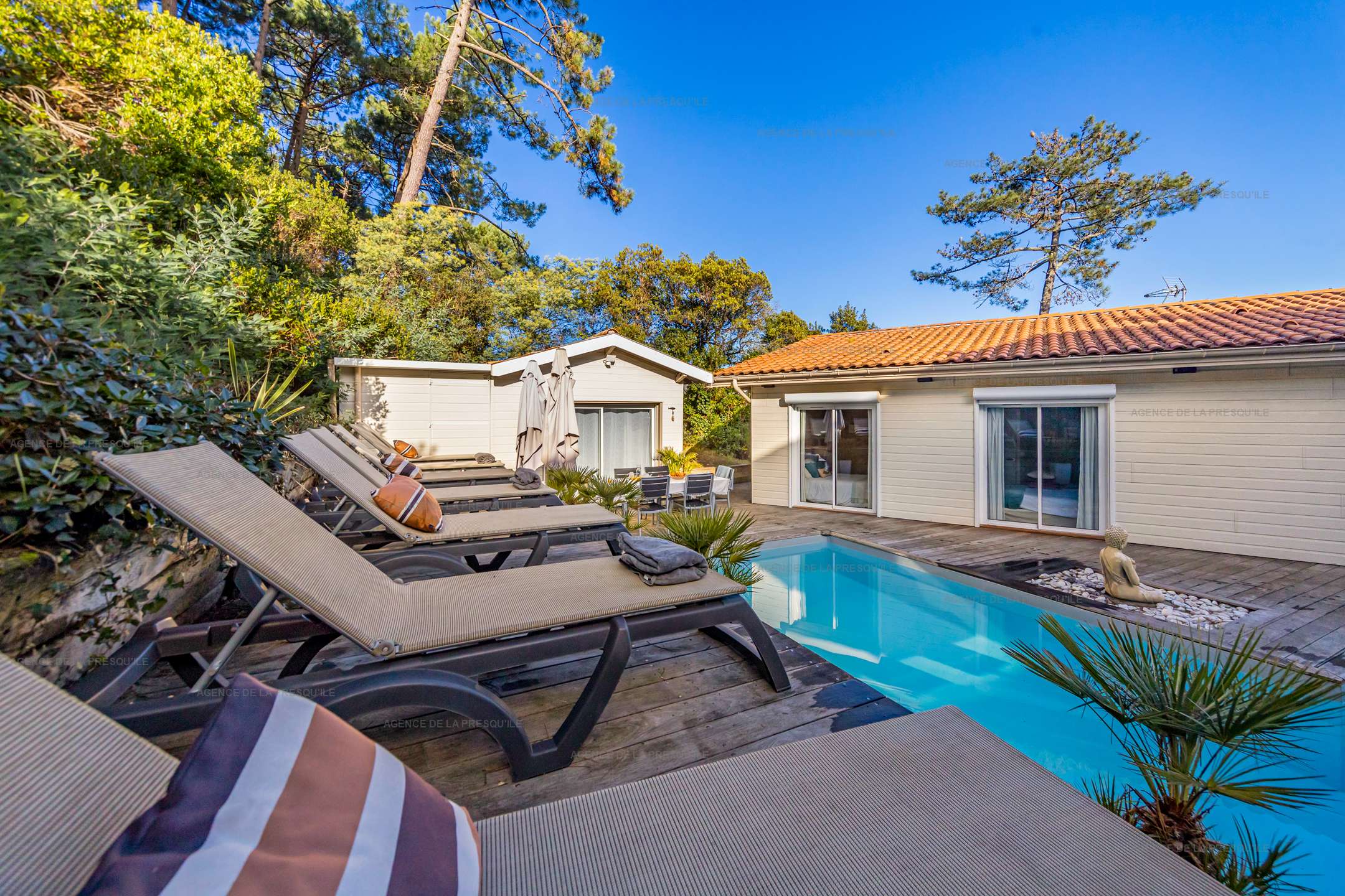 Découvrez cette villa de plain-pied, située sur les hauteurs du célèbre village du Canon, à seulement quelques pas des plages du Bassin.