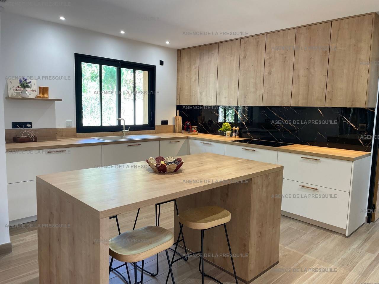 La villa se compose d’un bel espace de vie lumineux avec salon et salle à manger ainsi qu’une cuisine ouverte entièrement équipée.