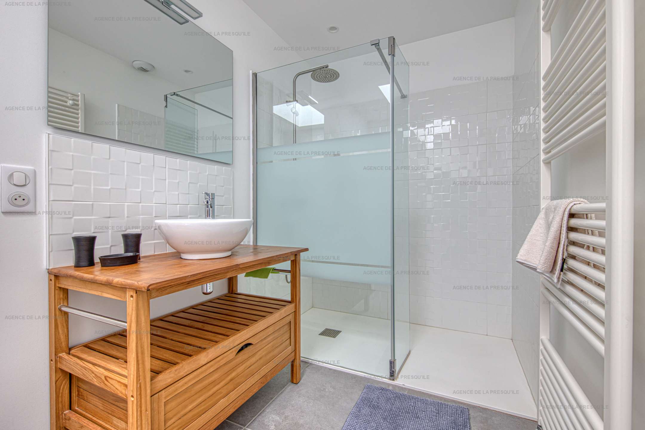 Elle est composée d’un salon, une cuisine américaine avec cellier attenant, trois chambres dont une avec salle d’eau, une salle d’eau avec wc, et un wc indépendant.