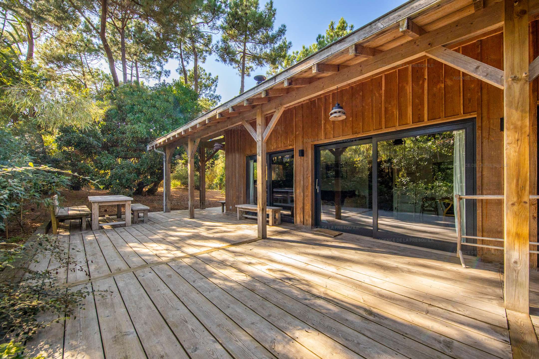 À l’extérieur, une grande terrasse permet de profiter pleinement du jardin arboré, que ce soit pour les repas, les jeux ou la détente. Plages accessibles à pied, balades à vélo, nature environnante… tout est réuni pour un séjour inoubliable au Cap-Ferret.